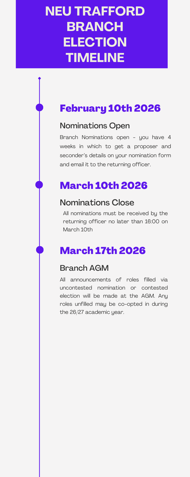 Once youโve read over the job descriptions in the link on the left and down below, all you need to do in order to stand for election for Trafford District is complete a nomination form, with the details of who proposes and seconds your nomination, which will be sent to the Returning Officer (Rashenda Chapman). Deadline for form completion is no later than 10th March at 16:00.